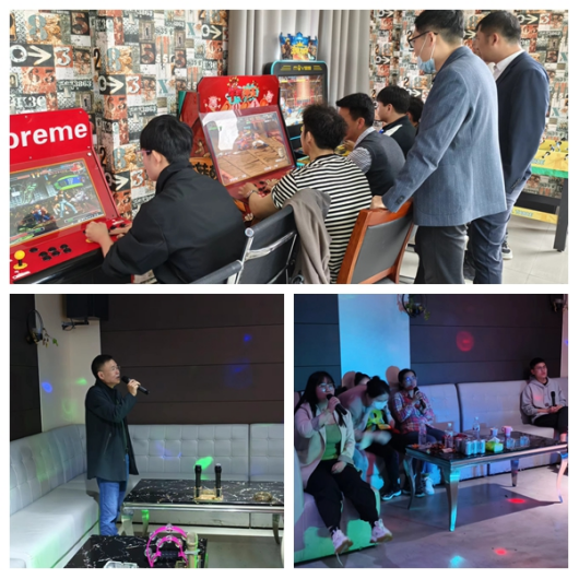 来到轰趴馆后,大家迅速融入氛围,或结伴成队,或三五成群,各自寻找喜爱的娱乐活动,有的在桌球上一决高下,有的在KTV中展示歌喉,有的在棋牌室中大杀四方,现场其乐融融,好不欢快。夜幕降临,众人围坐共享丰盛晚宴。